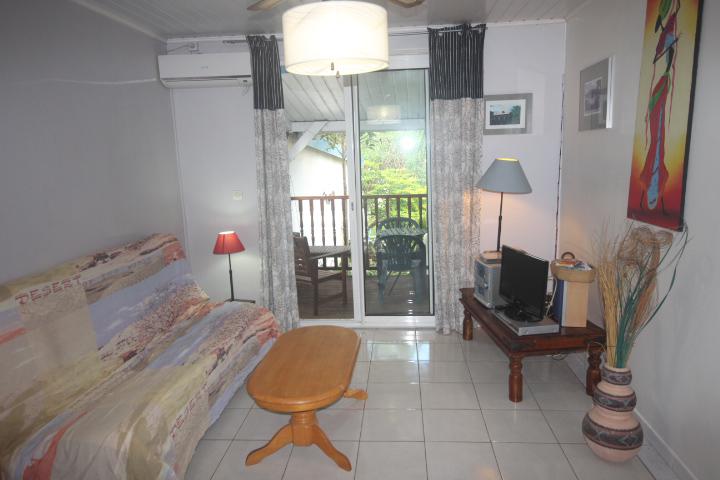 T2 climatisé composé d'un salon avec coin cuisine, d'une terrasse, d'une chambre et d'une salle de bain